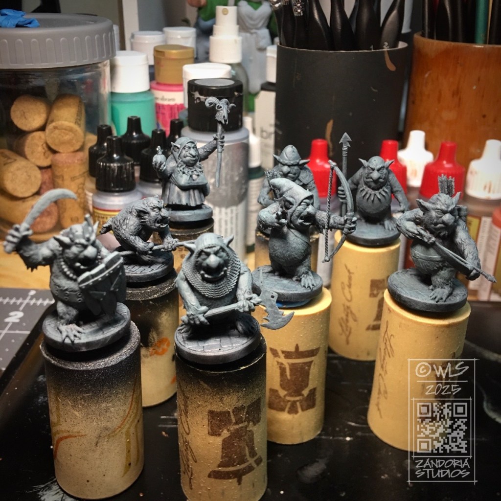This is a set of 3Dprintable goblins that I just finished. They are bestial and vicious, covered in fur, with large teeth and claws. Their weapons and armor are scavenged scraps that they have collected from raiding,